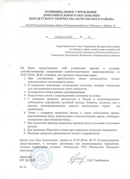 Предписания органов, осуществляющих государственный контроль (надзор) в сфере образования, отчеты об исполнении таких предписаний (при наличии)